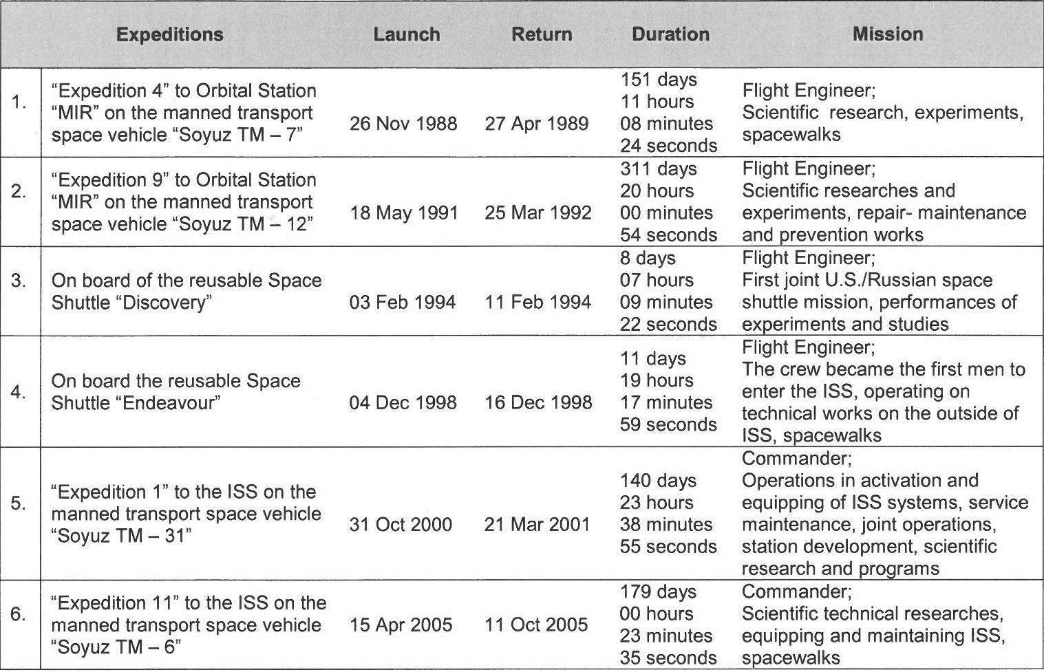 11 October 2005: Russian Cosmonaut Krikalev becomes the Absolute Record Holder in Accumulated Space Flight Time