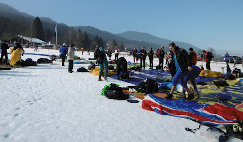 A foggy morning but that will not affect the qualifying run for the ski-race which is due to take place at 10.00 this morning. The end of the Ski Course and the Accuracy landing area are close together.