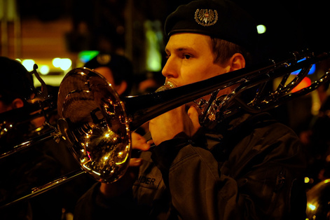 We were then treated to a military display when the Bürgergarde St. Johann im Pongau fired a salvo into the sky as a salute to all the athletes taking part in this World Championships and the officials and organisers making it possible. This was followed by music by the band, the Military Music Band of Salzburg regional military command and then another salute to the Deputy Governor of Saltzburg, after which, the women, who accompanied the soldiers, served him, along with the most senior officer present, a glass of schnapps. They then moved up onto the podium and served all those present. On International Women's Day it was interesting to see women handling an age old tradition.