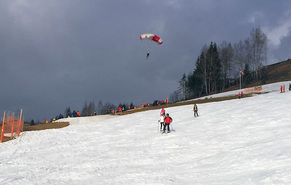 15.30 hrs   First jumper lands from the WIDi load - so we have the altitude and we can start round 3 Accuracy. The first jumper is the Single Starter Jiri Cerny, followed by The Netherlands Team, then Mixed Team 1 followed by the Russian Female team.   At least I am sat in a warm office just down from the target area whilst 'Casi' is working with the camera.