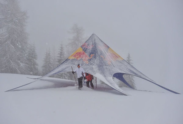 Having had a standby from 10.00 to 12.00 then again for a further hour - finally at 13.30 hrs the decision was made to move down the mountain to the lower DZ and prepare that in the hope the clouds lift enough to make the 3rd round of Accuracy.  It takes about 1.30 hrs to set up the target.