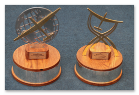 The trophies feature a glider in bronze mounted on a wooden stand.