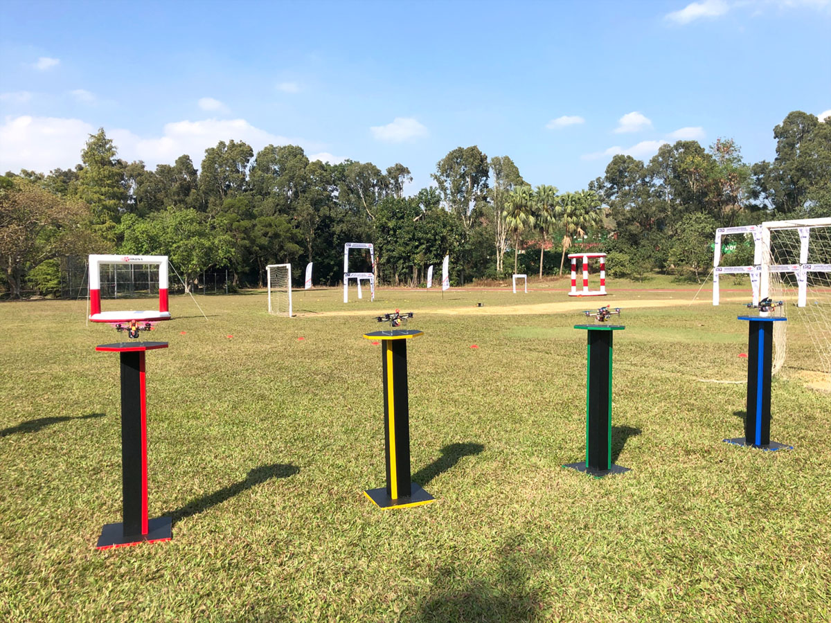Taking place at Fung Kai No.1 School, Sheng Shui, the beautiful green campus was a perfect location for setting up a challenging track for the race. The race kicked off with two rounds of qualifying heats with four pilots in each group. Sixteen qualified pilots have then been eliminated to eight pilots for semi-finals. The first two places in each race became final four to fight for the championship. All pilots built their own drones.