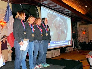 The prize giving was held in a function room at the Renaissance hotel and was followed by a Champagne toast and dinner. In addition to the normal rankings, a special mention was made of the Junior teams who were honoured with a plaque each engraved with their name, as well as a special award to the team with the highest results in 4-way FS. This was attributed to the French girls team, Aerokart Deep Blue for their impressive score. If there had not been a female ranking, the girls would have scored first and third in the open event. Graeme Windsor took the floor to conclude the competition, he thanked all the participants for their presence at this historical event and especially thanked Axel Zohmann for his work in making this event possible. The FAI Anthem was played while the FAI flag was lowered. The flag was given to the organiser as a souvenir of the event.