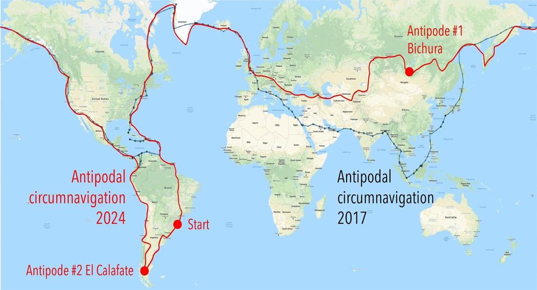 The pair set off from an airport in Jaguaruna, Brazil, which bears the name of Andre’s grandfather: Diomício Freitas/Forquilhinha Airport. The Robinson R66 Turbine helicopter will then travel north along the Eastern coast of the Americas to Greenland and Iceland, and across Europe to Antipode 1: Bichura, Russia. Remaining in the northern hemisphere to cross the Bering Sea, they will then travel south down the western coast of the United States, through Mexico and South America to reach Antipode 2: El Calafate in Argentina. The trip will be completed as they arrive back in Jaguaruna, Brazil.