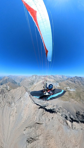 The take-off is quite complicated at Col Izoard and on this day there were a lot of pilots in this small place. I missed a take-off and after that, I got a lot of knots in my lines, at one moment I thought I will not even be able to take off. But after 20 minutes of work, I could get in the air. I was the last one to take off on this day and I was really stressed at the beginning. After I got over my stress I kept the cold head flying at my rhythm, not too fast but trying not to do mistakes or stupid choices. Conditions were perfect with almost no wind in altitude, only a strong breeze, and the climbs were good, up to 5m/s in the afternoon. As always I did some low points in the breeze around Motte du Caire but nothing too sketchy. Did my highest base in the afternoon in the Blayeul. In the morning in the Queyras and passing the Écrins I also was high.