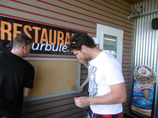 Martin Lemay, plus a couple from his group of willing volunteers fixing the Official Noticeboard - seen by all who visit the Drop Zone restaurant (which serves really good freshly made food).  Martin is also posting all information relating to the meet on his Facebook page : 8th World Cup in Canopy Piloting
