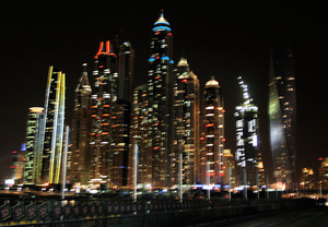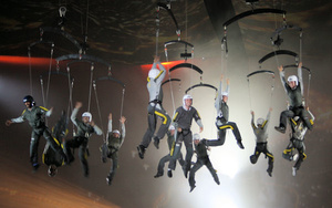 As we have entered the Drop Zone at Skydive Dubai many must have wondered what the round black building at the end of the car park was for - that was answered last night. A surround vision and sound arena where an amazing show awaited us. Based on the theme of reaching for the sky - with no limits - linking skydiving and the development of this amazing city of Dubai - we were treated to a 360 degree screen with moving and changing images - first developing the theme with words, then with lights and music and a group of gymnasts who performed aerial manoeuvres (with the aid of suspension harnesses) that are familiar to all the skydivers there. This show finally ended with a fireworks display over the top - in the sky - over the arena viewed through the fine gauze ceiling.