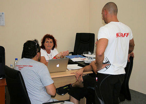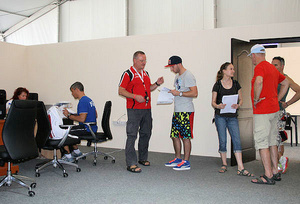 | Camille Jarden - Hotels & Transportation | Gernot Rittenschober answers questions | Ute Vetter checks the Registratin details & hands out IDs |