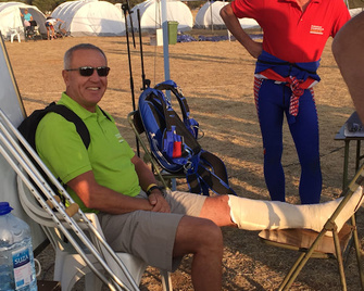14,00 pm The winds have dropped but due to problems with ATC at the main airport we have to finish jumping by 15.00 hrs today - not the 17.00 hrs we were expecting. We already have had the first call for the Male Semi-Final of 26 individual Male Accuracy plus 2 junior male for a jump-off of their tie for 2nd place, Sebastien Greser, AUT and Radu Ionila, ROU. We also have rejumps of the Female Accuracy Round 7 before we can go to the Semi-Final for the Female Event. As I write this we have turbulent conditions and the wind has not settleed enough yet. It is very busy in the organisers office at the moment.