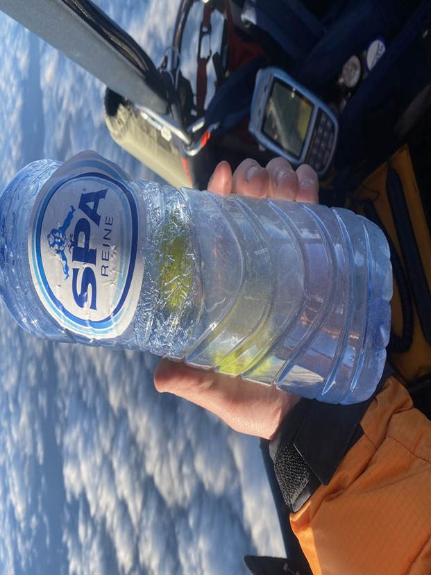 The big problem I hadn’t factored in was that all my food and my drinks were frozen after a few hours of flying. In terms of batteries, I had packed all my instruments with heat pads for stretching the life span of my batteries.