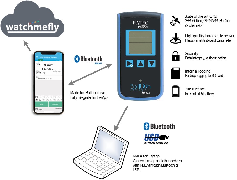 - Connection to external Balloon Live sensor for best quality GPS and barometric altitude