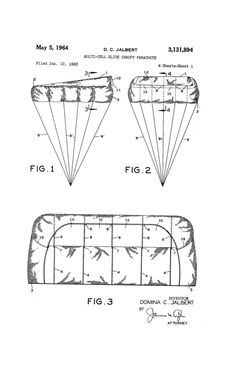 Jalbert did not have all the technical equipment needed to develop his Parafoil into a commercial model, so he went to Notre Dame University in Wisconsin and met a NASA administrator, John Nicolaides. He had brought with him 20 or so prototypes. Nicolaides was sceptical… until he saw the results of the wind tunnel tests. The lift components obtained were unheard of! Jalbert was then hailed by NASA as a born genius, the greatest contributor to parachuting since da Vinci! But that was all he would get. His invention was diverted and developed mainly as a military parachute. It was believed that such a wing – with a L/D ratio of 3 – would be saving quite a few lives in the Vietnam war. There were more civil uses too: the Army Golden Knights display team switched from Rogallo’s Parawing to Jalbert’s Parafoil; parachutists in the USA and in the world soon followed.