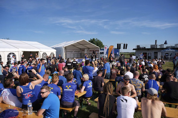 The general briefing by the organiser welcoming everyone to this Championships and thanking all for coming, it is an excellent turnout and exceeds the number of teams that entered in 2011 (the last time this organiser held a European Championships and World Cup). He was followed by Dr. Rainer 'Exi" Hoenle, IPC President and also Meet Director for this competition. He explained the plan for the start of the competiton at 9.00 am tomorrow, starting with 4-Way Open, 4-Way Female and VFS - followed by a second round of each. This should take us through to about mid-day when we would switch to CF 2-Way, AE and Speed skydiving with the aim to complete two rounds of all events before stopping at 16.30 in order to change and get to the Opening Ceremony to be held in the Centre of Saarlouis starting at 18.00.