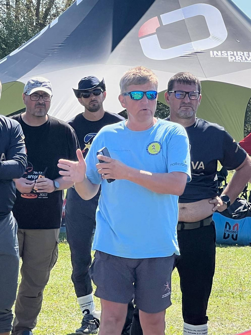 The 7th FAI European Paragliding Accuracy Championships is going on. Myrianthe Ewington reports. Day 5 greeted the competitors with glorious sunshine and beautiful blue skies. Round 8 started sharply at 10.30 but the air was already starting to bubble! The first few pilots (both new and experienced) took maximum scores struggling to deal with the incredibly light winds and initial thermals.