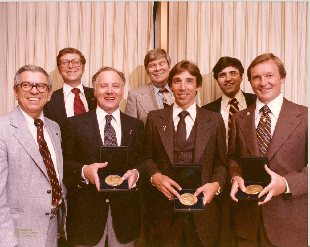 L-R: Ben Abruzzo, Larry Newman and Maxie Anderson receiving their medals following the 1978 flight.