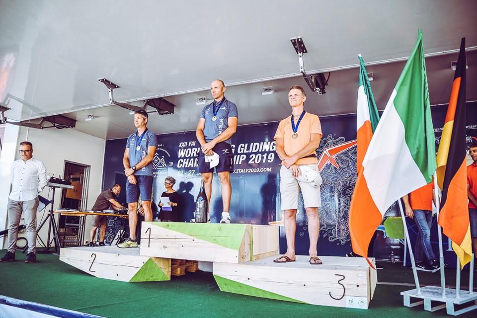 Winner of 2019 Italian team has occupied the first place on the podium since 2009. Squadra Azzura led by Flavio Tebaldi also include the winners in the Overall - gold by Alessandro Ploner and silver by Christian Ciech. The bronze medal goes to Primoz Gricar (Germany). It is interesting to note that this podium one to one repeats the podium of Monte Cucco 2011 - there also the winners were Ploner, Ciech and Gricar. It is the third gold medal for Alessandro, still, he has not beaten the record of Manfred Rumer being 4 times Hang gliding Class 1 World Champion. Throughout the race, Manfred was one of the leaders and only one serious mistake erased him and the Austrian team from the podium.