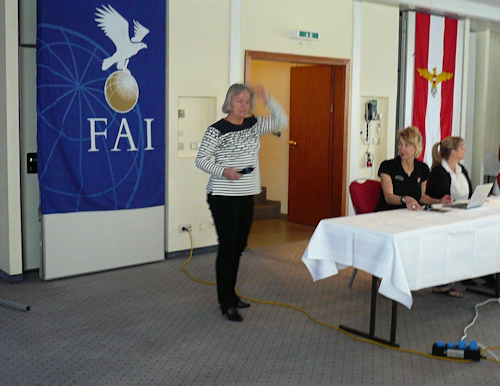 Pia commenced by asking that the FAI Judges' lists displayed at the back of the room be checked by each delegation. In order to standardise the training of new judges the committee had decided to create a role of a Judge Training Co-ordinator, and they suggested Karla Cole (Germany) take on this position. Karla then made a presentation on how she visualised the role.