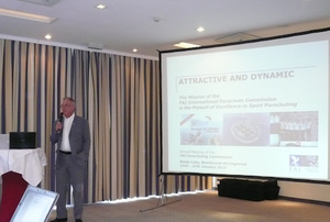 Dr. Exi Hoenle then introduced his committee of Canopy Piloting and talked about the competitions during 2013. The World Games in Cali and the World Cup and European Championships in Kolomna which despite weather problems was a successful competition.