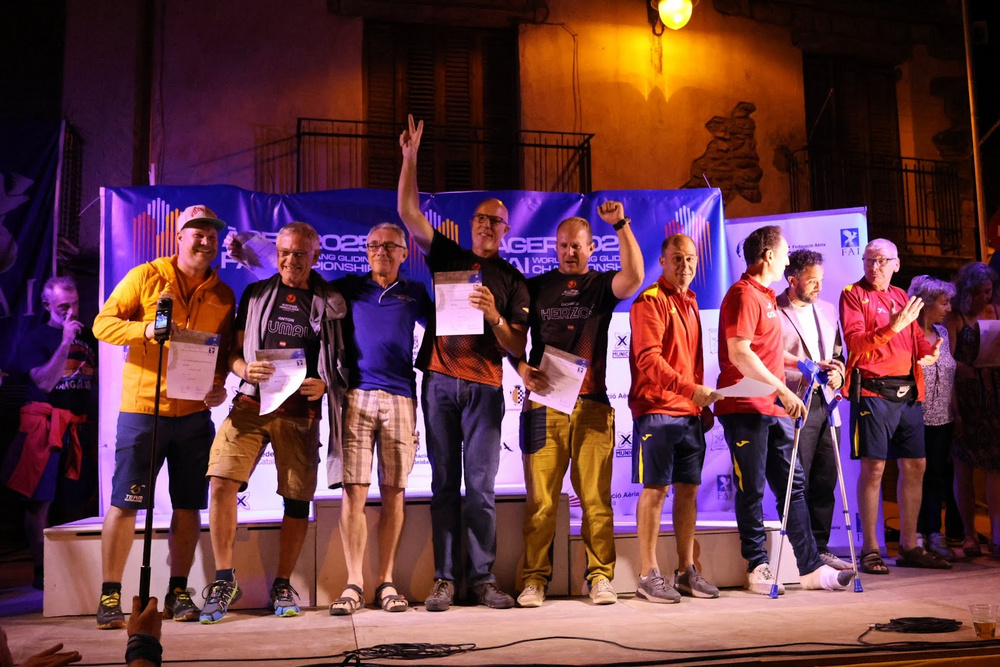 The 24th FAI World Hang Gliding Class 1 and 10th FAI World Hang Gliding Class 5 Championships have finished in Ager, Spain. The event was held from 13-26 July 2025. It was organised by Club Zenith Vol Lliure with the support of Federación Aèria Catalana and Real Federación Aérea Española. Six tasks were flown with 115 pilots competing in Class 1, and 32 in Class 5.