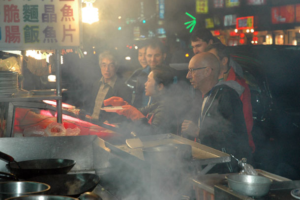 Ordering food at the "red tables", one of the everyday outside cantines.