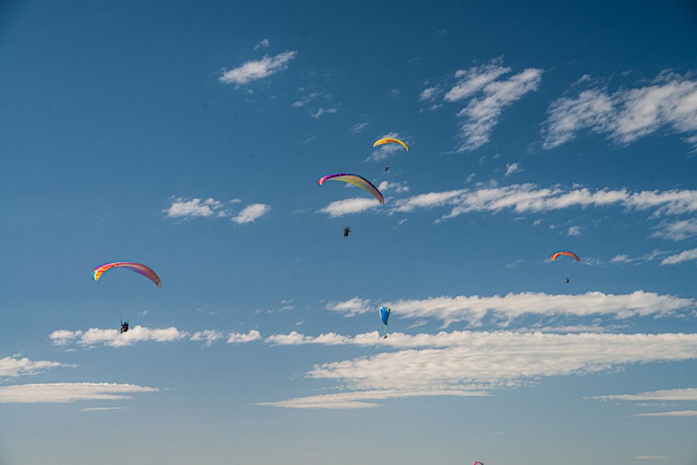 June in Tekeli is known for good weather and picturesque views, the place is perfect for both paragliding masters and novice pilots who are just getting used to the sky. During each of the last 2 competitions, the pilots flew 3 tasks: 30, 50, and 65 km long. In Tekeli there are two take-offs - 800 meters and 200 meters, both can be used for different conditions. It is known as one of the representative Paragliding accuracy landing and cross-country sites in Kazakhstan, which runs safe tasks for athletes of various levels.