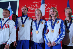 The Parachuting Canopy Formation 2-Way Sequential team event was won by France, the only team made up of two women, plus a male cameraman.