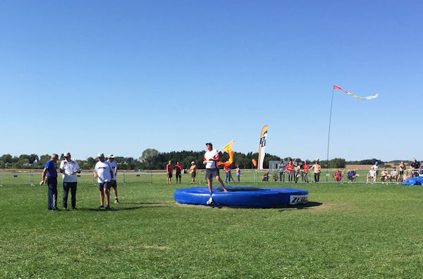 15.15 With 11 competitors left to complete Round 9 in the Male Accuracy event a sudden and vicious "dust devil" came through. The five competitors in the air at the time have been awarded rejumps and the aircraft landed with the other competitors on board. By 15.45 the conditions were back to good accuracy weather!