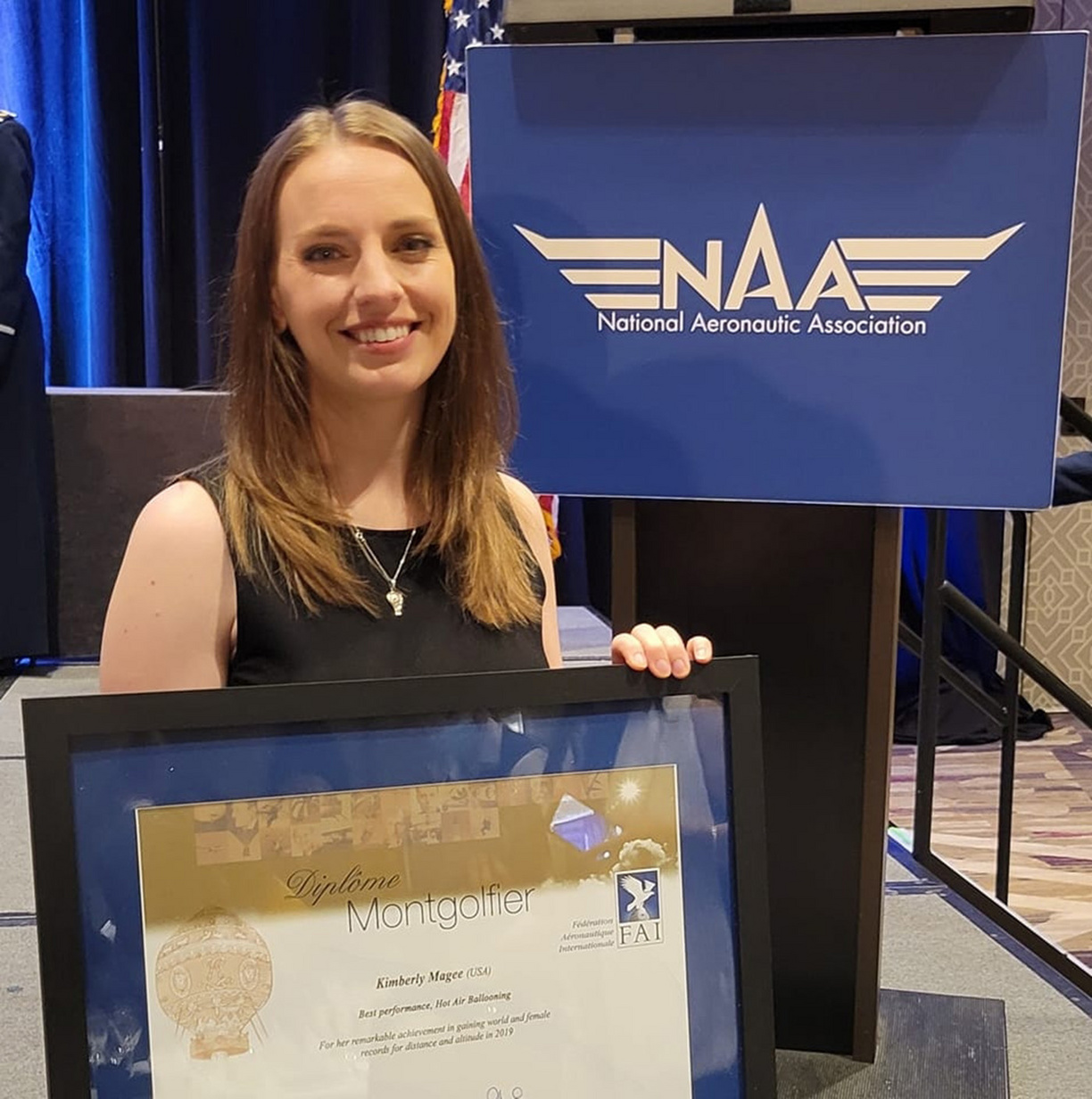 I am very honored to have earned this award. Growing up in hot air ballooning, the people on the list of previous Montgolfier Diploma winners were names I looked up to. It's very humbling to be one of only a handful of women from the USA to have received this award.