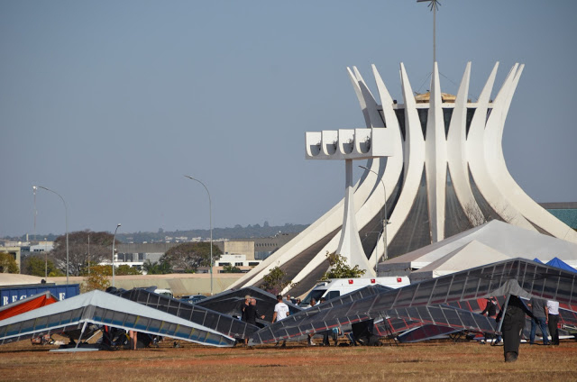 The official take off was Paraná Valley Ramp, in Formosa (GO). Located 92 km from the Federal Capital, the city of Goiás has a take off at about 1,000 meters ASL. The goal was usualy set in the flats near the capital or for spectators' purpose right on the Esplanada in the city. Wide enough for about 30 pilots to come, Esplanada still required some height limitations for safety arrival as one needed to cross power lines or high traffic roads. In the final rush the pilots used to neglect those rules that made the organizers adjust them on the spot - and they succeeded to keep them all in good health.  Though not without some adventures of improper place landing that made a lot of fuss for retrieve and that settled juridical issues.