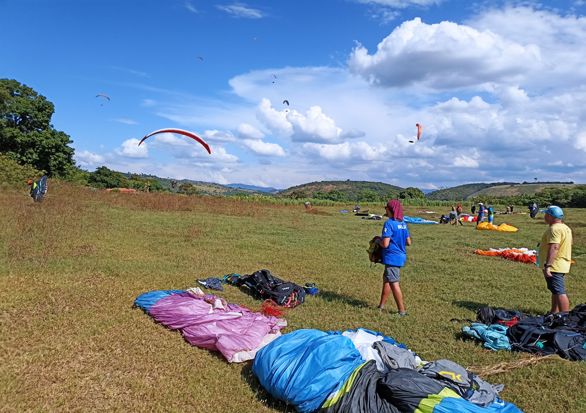 The morning started with a concern about the weather - a cold front is approaching with a high probability of rains in the south-southwest of Governador Valadares. The coming of the front can also cause high turbulence and undesirable wind behavior. That is why a rather conservative task was sent to the east from the take-off - 79 km zigzag along the river valley. The start was scheduled at 12:00. But the fears were in vain. Valadares again unpredictably showed a very nice flying weather. The pilot went all the way along the optimized route. Just stopping from time to time to get a thermal. On live tracking, it looked like a big color caterpillar crawled from turn point to turn point. But in fact, the pilots were flying at a speed of up to 50-60 km/h. The US team did their best to win. 4-6 US pilots were the first to cross the ESS line but the leading points of Brazilians were better.