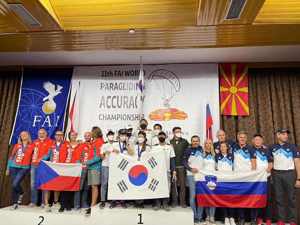 11th FAI World Paragliding Accuracy Championship in Prilep North Macedonia becomes valid with only 3 rounds flown. It was challenging all way through... but they did it. It was a challenge to host an event and gather participants under the pressure of pandemic restrictions and a greater challenge to have competition flights in questionable weather conditions. The Championship took place from October 6 till 16, 2021 and out of 10 days 7 were rainy and the other 2 snowing. So the organisers had to face extraordinary pressure to get the most precise weather forecasting and organise logistics to find these narrow windows between rainclouds and try to conduct rounds. Out of 5 rounds that begun, only 3 were completed. Due to a reduced number of rounds, competitors were unable to discard “worst results”, so any mistake was sufficient to compromise access to the podium. Another complexity was that 2 rounds out of 3 ended on a different day with different conditions from the day they had begun.
