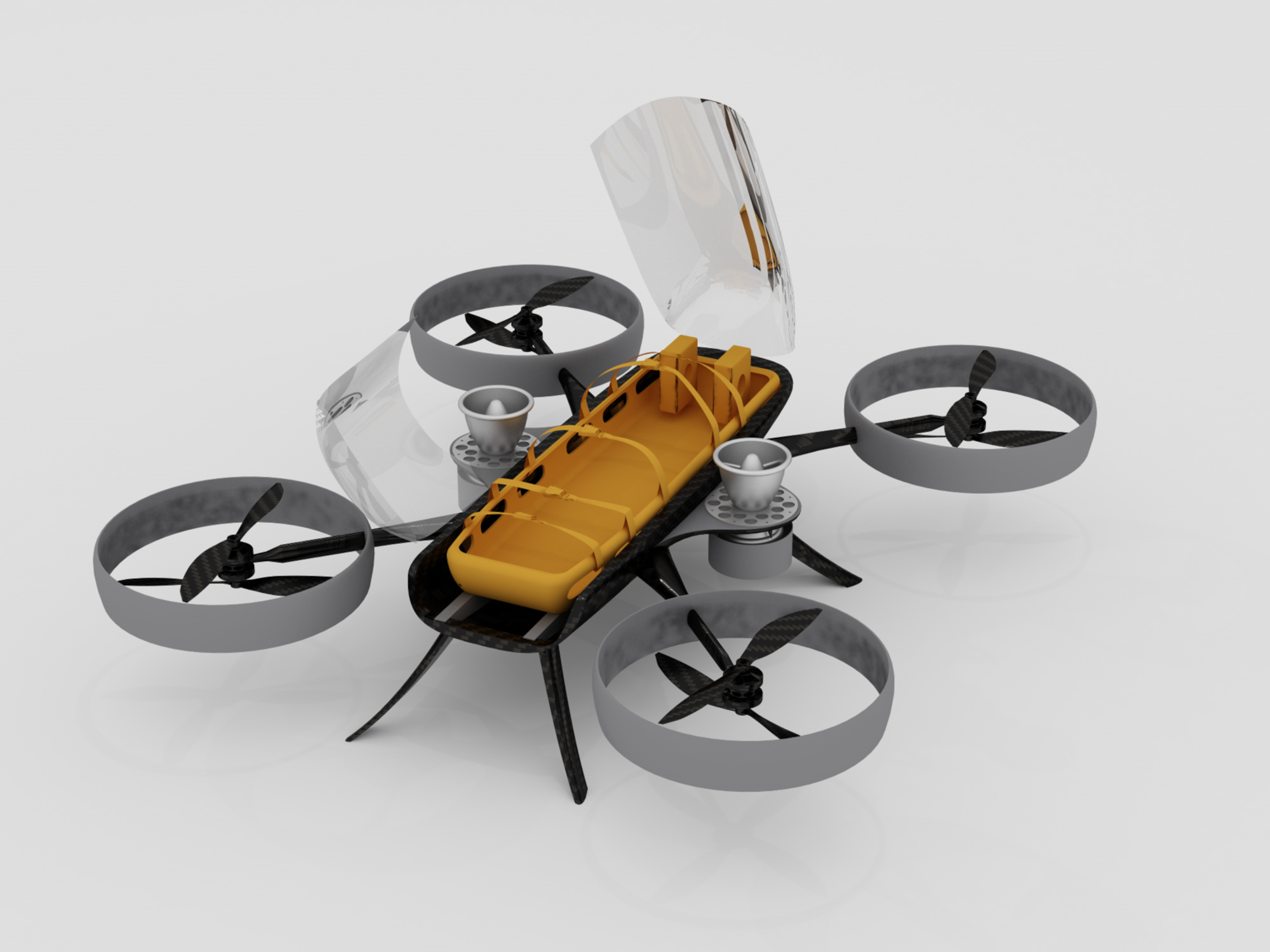 Navanteri imagined a single-person drone that could carry an injured person out of harm’s way in all weathers. “The drone is intended mainly for rescue and first-aid missions,” he explained. For example, “urgent interventions in remote villages, or where access is temporarily difficult.”