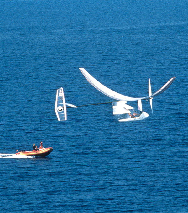 Powered by a 3m propeller and weighing just 31kg, Daedalus required extreme fitness to fly, as the propeller was turned by leg-power alone.