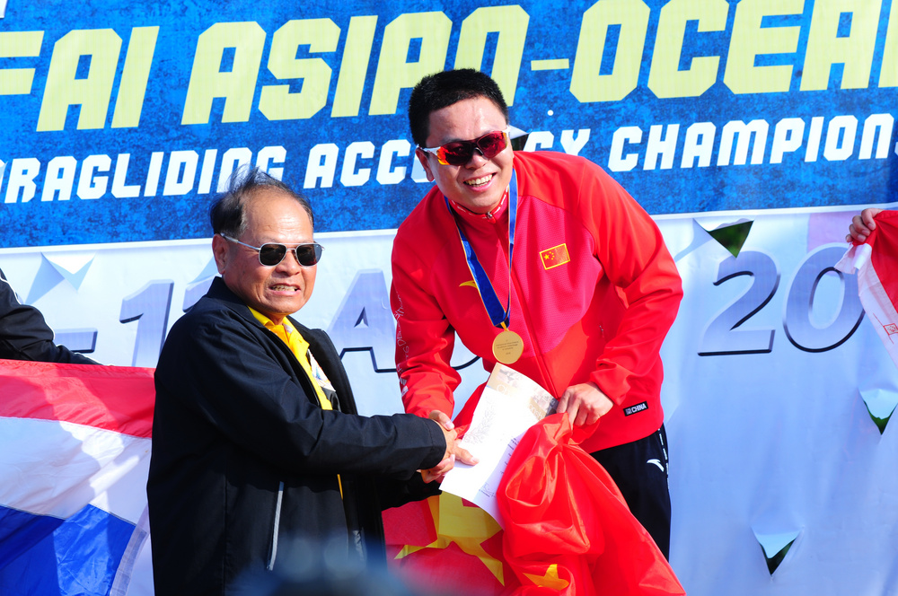 Last day, April 12th, proved to be too windy for competition flights and the results were finalized after 11 rounds. Two pilots shared the result of 19 cm for 1st place and two pilots had 25 cm for third place. The results, in this case, were determined by the number of 0 and 1 cm in results of the pilots. China’s Jianwei Wang took the gold in overall, Thailand’s Tanapat Luangiam took silver and Hongji Wang from China the bronze.