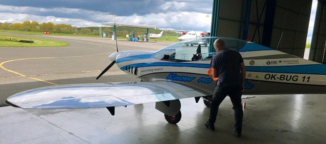 As Jiří explains, “The weight was a very important aspect to consider. To set an FAI record we had to be two in the cockpit and the Shark 600 has two 75 litre tanks. The total weight of the aircraft, crew and fuel could be a maximum of 600 kg. So given the weight of the crew, we could take approximately 140 litres of fuel. To reduce drag, Jiří gave the Shark a good polish before take-off!”