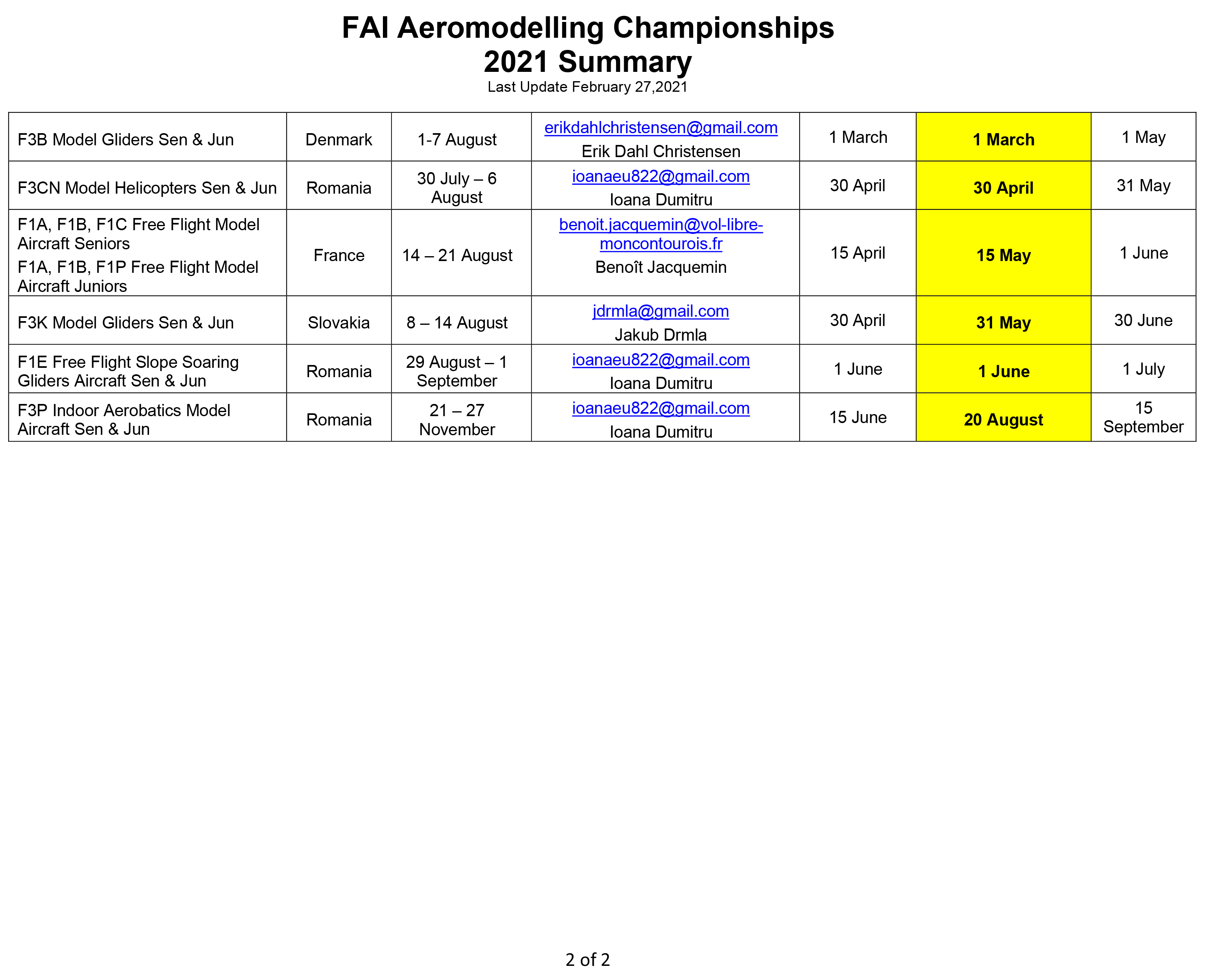 The situation is evaluated on case by case basis. We know from the reports, that almost everywhere restrictions are applied but not all over of the world are the same. Unfortunately, there are delays in vaccinations and according to the estimations the percentage of the vaccinated population which will allow the authorities to consider lifting the restrictions will be reached later than estimated. You will find together with this announcement a table with all First Category events. The date when the organizers together with CIAM will finally decide is also included. We have already started contacting the organizers and this will happen with all of them so to decide the best possible option for each event. We are also considering the messages we are receiving from the NACs and we are listening carefully their concerns or suggestions. We all know that the situation is not easy. It is not only the pandemic which is causing a lot of problems, but due to the pandemic in many occasions our life and priorities have changed.
