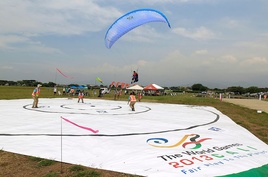 The 2013 edition takes place in Cali, Colombia, over a period of 11 days from July 25 to August 4 2013. 32 official sports feature in the programme, including Parachuting Canopy Piloting and Paragliding Accuracy, while AeroMusicals (Aeromodelling) is present as a demonstration sport. The Parachuting and Paragliding competitions run concurrently on the same site, for maximum spectator interest, from 1 to 4 August 2013. Some 65 competitors (36 for parachuting and 29 for paragliding) gained entry to the Games.