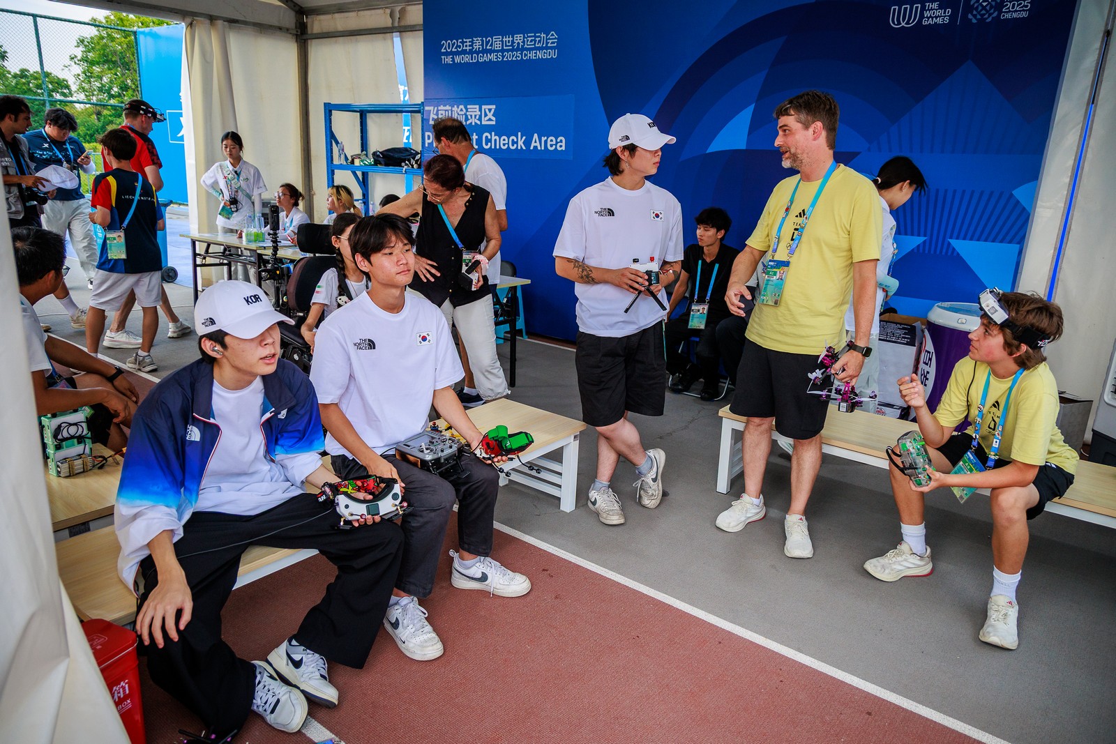While individual races are short, sharp and fast – the drones hit 150km/h in seconds – the overall competition is a long one. And the Elimination rounds can easily turn into a marathon. During some downtime we toured the pilots' tent to check on how they were enjoying the competition here in Chengdu.