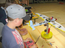 Provide construction planes for the students and parents to take home, plan an area for students to bring models that need repaired, construction frames and jigs should be big enough, otherwise children will have disappointing problems, Explain the function of grain in the wood in model construction, mark the grain with an arrow! Have a completed model with descriptions of the airplane parts, the center of gravity and the grain in the middle of the work area.