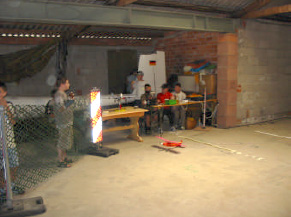 Model planes, two poles, energy cord, potentiometer, tape for outlining landing area or colored marker, table and chairs.