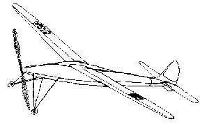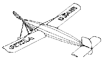 THIRD FLIGHT: Allman ...became a little tense. The moment of drama I mentioned earlier was now approaching... Allman told me... "I am putting on absolute maximum turns, the rubber can break!" As I held the model, and Allman piled on the turns, I became aware that ... the whole world was watching us ... we were at the take off board ... and Allman placed "Grasshopper" on the board ... and than picked it up and moved the wing forward! He than placed the model back on the board and looked at the starters. I could not believe what I was seeing! "DON'T LET GO", I called to Allman ... he paused, picked the model up ... and turned to me . ..not saying a word. "YOU MOVED THE WING FORWARD" I said. "BUT THE MODEL WAS STALLING" ..."you should have moved it (the wing) back." Allman ... slid it back again ... then he replaced the "Grasshopper" on the board, looked at the timekeepers, and she was off! ..."Grasshopper"... set to fly in very large circles of about 250 to 300 yards diameter ...cruised up to 70 feet and recorded 164 seconds. The Cup was ours!"
