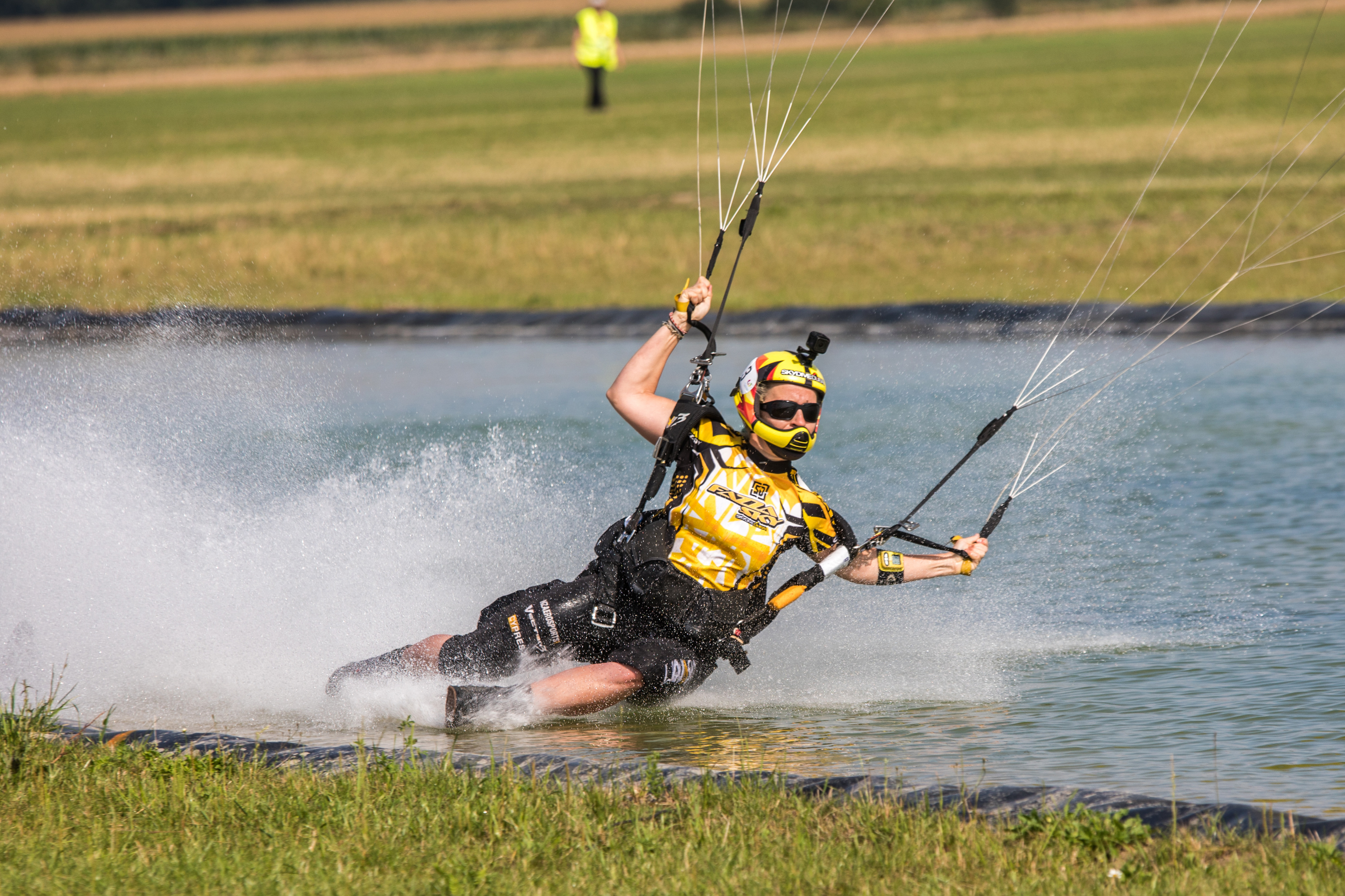 Canopy piloting is a fairly new sport, made possible by the development of smaller and faster canopies in the mid-1990s. The discipline was originally called ‘blade running’ but soon evolved into the format on display at the Games. Competitors compete over a stretch of water for safety reasons because of the high speeds involved - at the same time creating spectacular action as the parachutists swoop across the surface of the water, leaving a plume of spray behind them.
